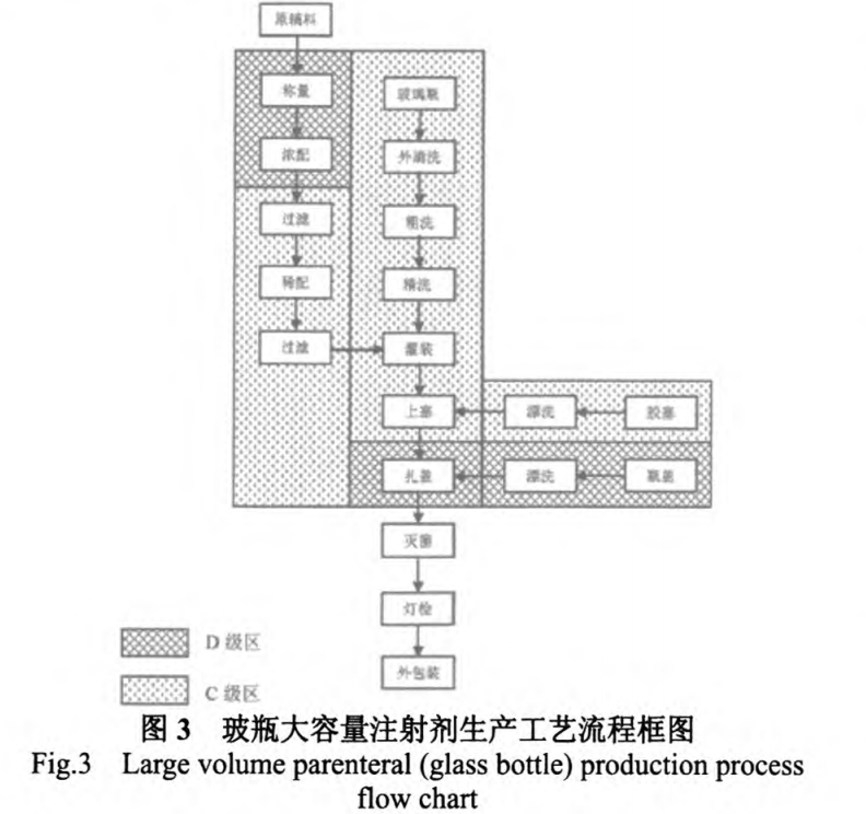 由于大輸液是經靜脈直接輸入人體內部,因此必須確保輸液質量,包括藥品的安全性、穩(wěn)定性、無菌、無熱源等。大容量注射劑是典型的最終滅菌工藝生產的無菌制劑,由于生產需要的物流量大,設備體積大且多為固定式設備,因此大輸液車間通常面積較大,維持車間潔凈度的難度較大,成本較高,設計時應根據工藝流程和物料流向合理進行工藝布局,既有滿足生產的足夠空間,又可實現(xiàn)人流和物流的合理流動。